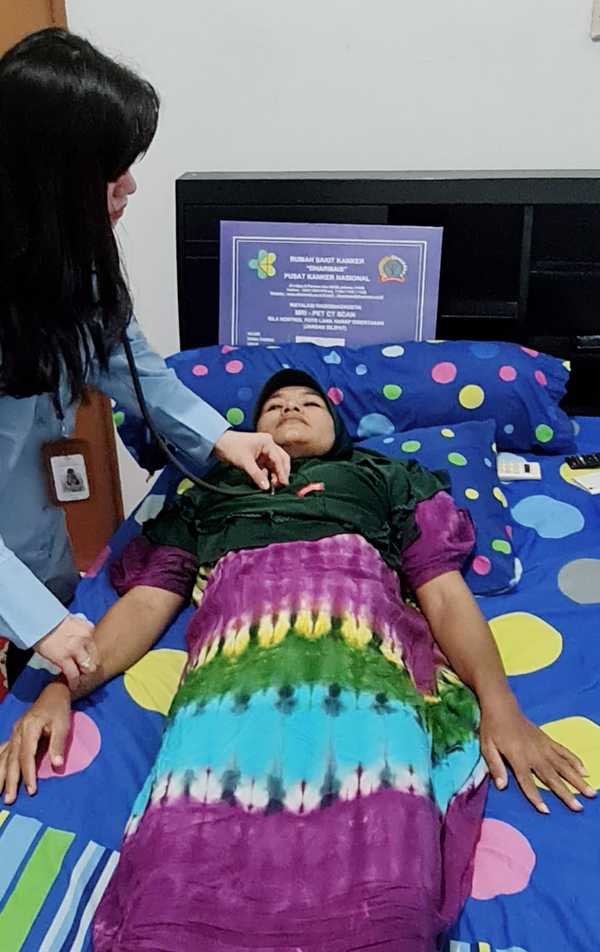 Ia menjelaskan, pasien kerap kali mengeluh nyeri pada perut bagian bawah dan mengalami pendarahan, dan sempat mendapat tranfusi 7 kantong darah. Kini, pasien sedang di bawah penanganan dokter spesialis bedah onkologi RS Dharmais Jakarta.