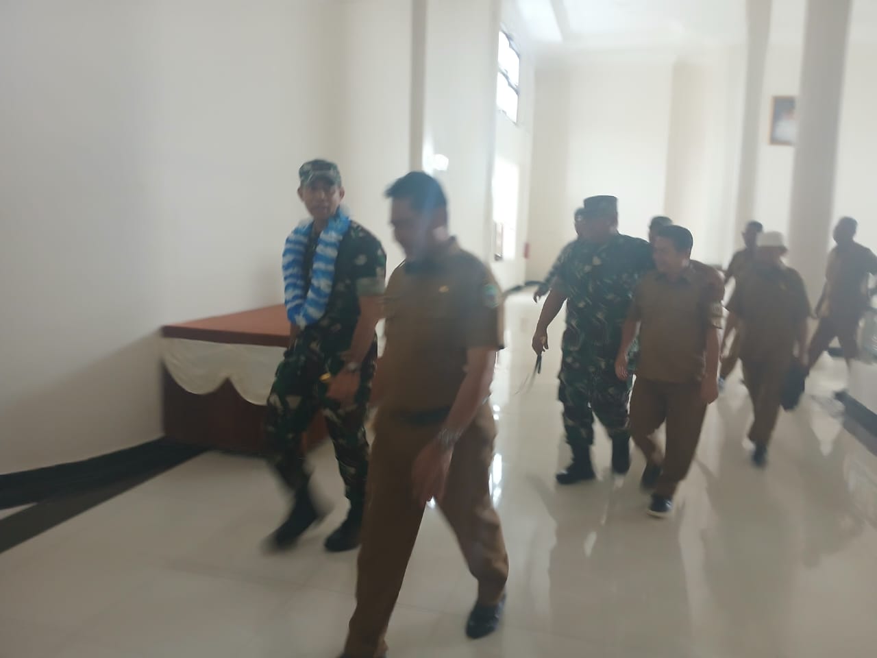 Sejumlah pimpinan OPD juga ikut menyaksikan kedatangan Brigjen TNI Enoh Solehudin. Tampak saling menyapa antara Bupati dan jenderal bintang satu itu sembari berjalan diikuti oleh seluruh OPD dan rombongannya.