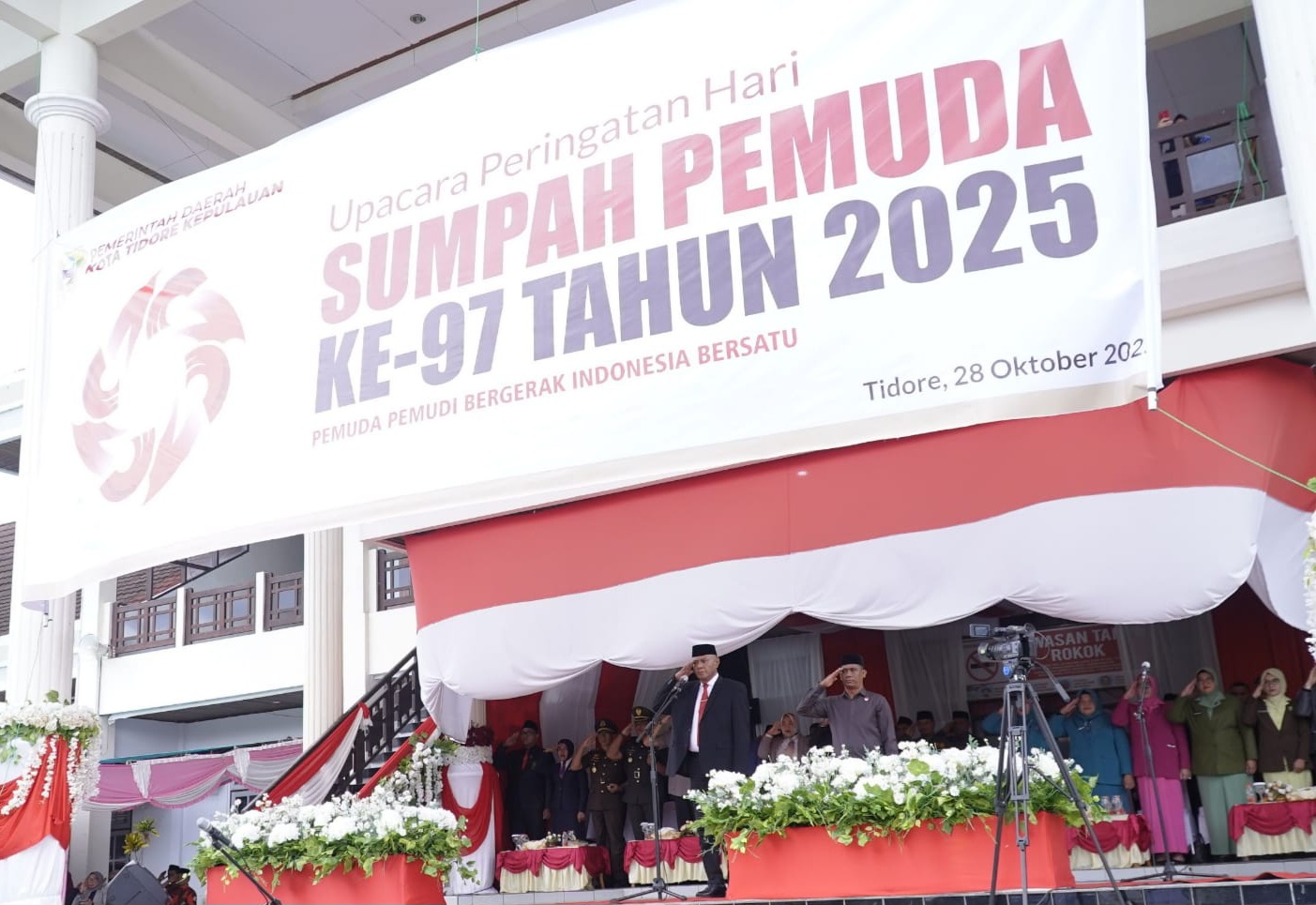 PENAMALUT.COM, TIDORE – Upacara Peringatan Hari Sumpah Pemuda ke 97 Tahun di Lingkungan Pemerintahan Kota Tidore Kepulauan Selasa (28/10) berlangsung lancar dan khidmat. Upacara ini dipusatkan di halaman Kantor Wali Kota Tidore yang dipimpin langsung Wali Kota Muhammad Sinen bertindak selaku Inspektur Upacara.