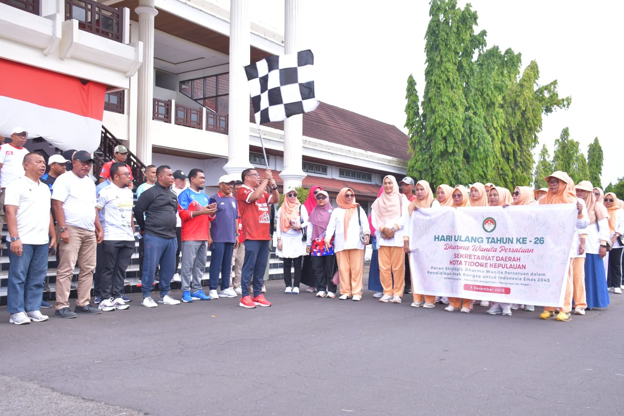 Jalan santai yang mengambil titik start di halaman Kantor Wali Kota Tidore dan finish di Open Space ini dilepas secara resmi oleh Sekretaris Daerah Kota Tidore Kepulauan H. Ismail Dukomalamo didampingi pimpinan OPD di lingkup Pemerintah Kota Tidore Kepulauan dan diikuti Ketua DWP Kota Tidore Kepulauan Hj Nuraen Ismail Dukomalamo, Ketua IV Tim Penggerak PKK Kota Tidore Kepulauan Verawati Abdurrahman Arsyad, Anggota Tim PKK Kota Tidore Kepulauan serta seluruh Pengurus dan anggota DWP Kota Tidore Kepulauan.