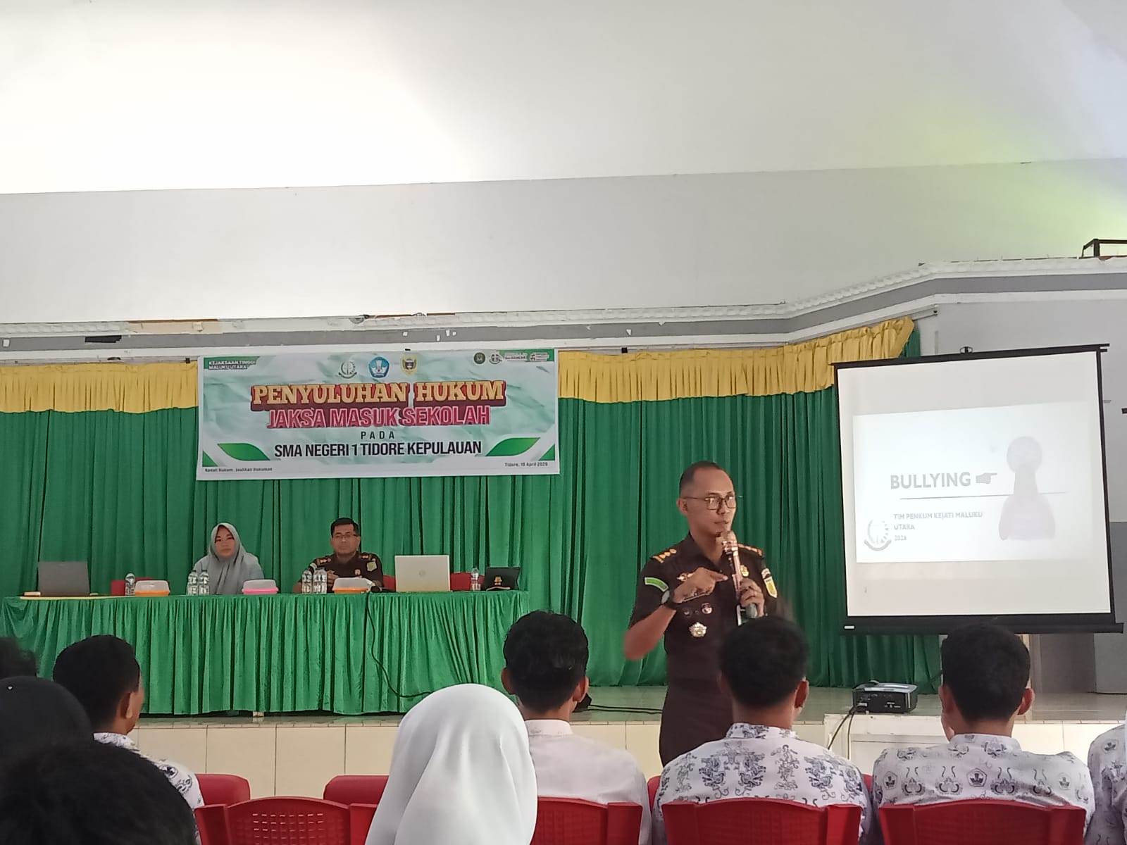 PENAMALUT.COM, TIDORE – Seksi Penerangan Hukum (Penkum) Kejaksaan Tinggi Maluku Utara kembali menggelar program Jaksa Masuk Sekolah di SMA Negeri 1 Tidore Kepulauan, Rabu (15/4/2026), dengan fokus pada edukasi bahaya perundungan (bullying) di lingkungan pelajar.