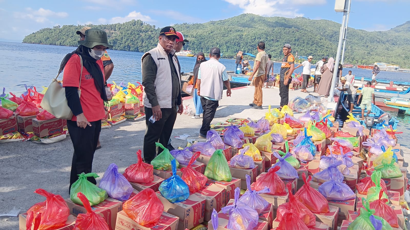 Bantuan berupa paket sembako disalurkan kepada 442 warga di empat desa di Pulau Maitara, Kecamatan Tidore Utara, Senin (27/4/2025).